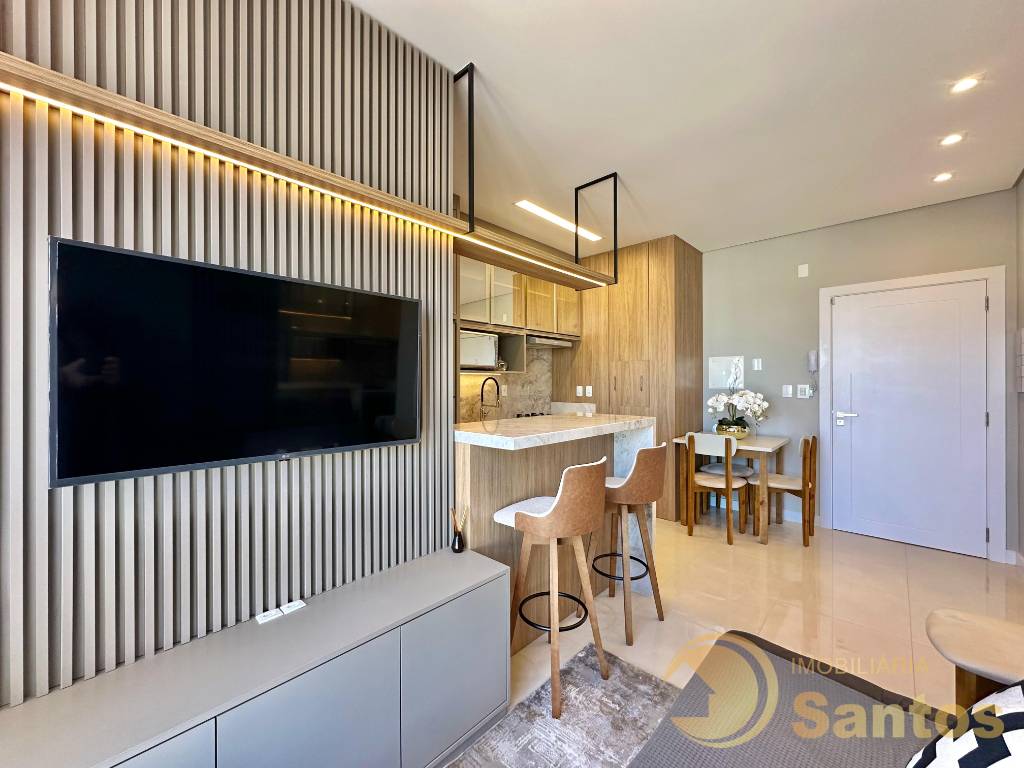 APARTAMENTO A VENDA COM INFRA A VENDA ! ———————————————— 01 Dormitório Banho Social Living integrado estar e jantar Cozinha americana Mobiliado Decorado 38 M² 01 Box Para carro ———————————————— Edifício 02 Elevadores Zelador Permanente Rooftop com Piscina com borda infinita, Salão de festas e telhado verde. ————————————————