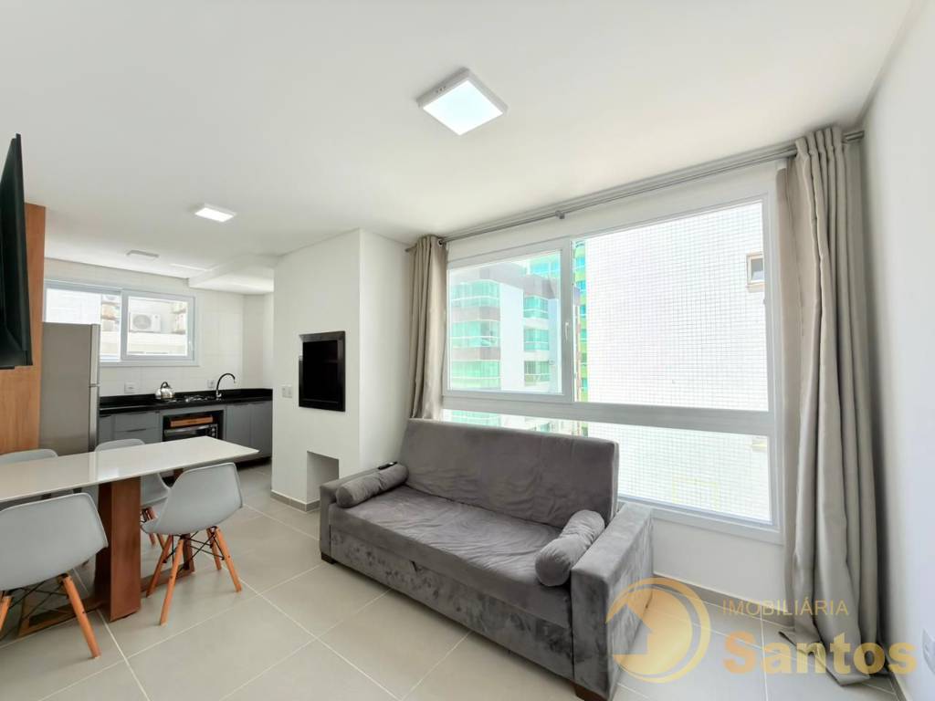 APARTAMENTO À VENDA, TODO MOBILIADO, SACADA DE LATERAL À VENDA! ———————————————— 01 Dormitório Banheiro social Mobiliado Sacada lateral Living Área de serviço Cozinha americana Churrasqueira Ar split 49, 38 M² área total 01 box de garagem ———————————————— Edifício 02 Elevadores Hall decorado