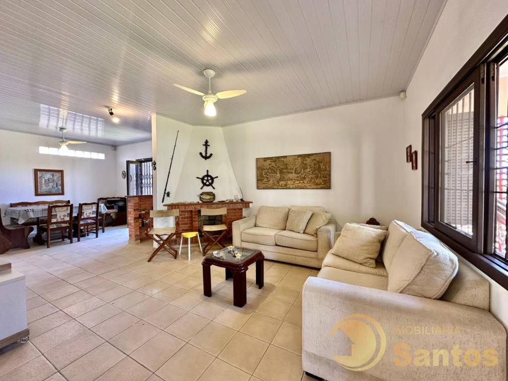 CASA COM 3 TERRENOS APENAS 2 QUADRAS DO MAR —————————— - 03 dormitórios (1 suíte); - Banheiro social; - Lavabo; -?Ampla sala de estar e jantar com lareira; - Cozinha com churrasqueira; -?Área de serviço separada -?Sóton; -?Garagem coberta para dois carros; -?Espaço gourmet com lavabo e depósito grande; - Pomar; -?Piscina; - Telhado com manta asfáltica; - 03 terrenos individualizados de 11.50 x 25 - Sistema de alarme e câmeras.